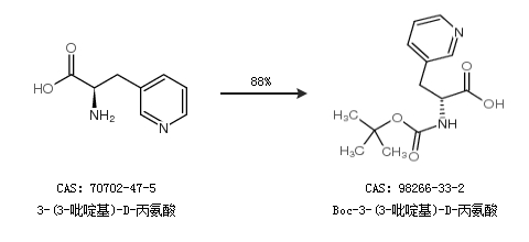 1.通过3-(3-吡啶基)-D-丙氨酸合成Boc-3-(3-吡啶基)-D-丙氨酸,收率约88%;