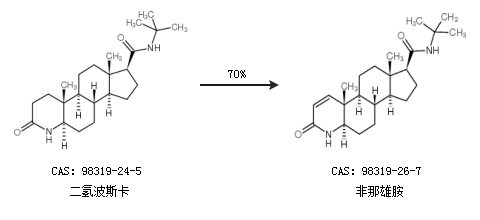 1.通过二氢波斯卡合成非那雄胺,收率约70%;