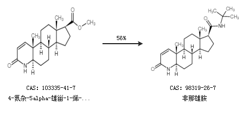 2.通过4-氮杂-5alpha-雄甾-1-烯-3-酮-17beta-羧酸甲酯合成非那雄胺,收率约56%;