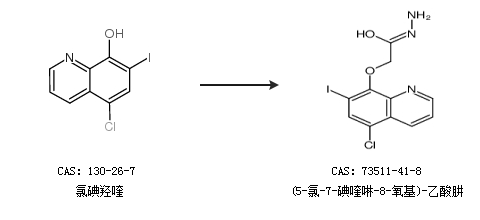 1.通过氯碘羟喹合成(5-氯-7-碘喹啉-8-氧基)-乙酸肼
