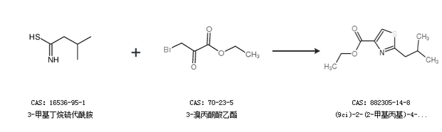 2.通过3-甲基丁烷硫代酰胺和3-溴丙酮酸乙酯合成(9ci)-2-(2-甲基丙基)-4-噻唑羧酸乙酯