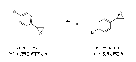 1.通过(±)-4-溴苯乙烯环氧化物合成(R)-4-溴氧化苯乙烯,收率约33%;