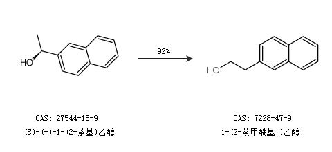 2.通过(S)-(-)-1-(2-萘基)乙醇合成1-(2-萘甲酰基 )乙醇,收率约92%;