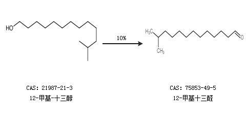 1.通过12-甲基-十三醇合成12-甲基十三醛,收率约10%;
