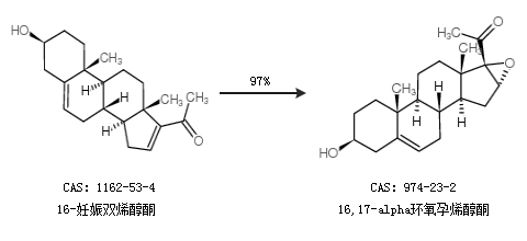 2.通过16-妊娠双烯醇酮合成16,17-alpha环氧孕烯醇酮,收率约97%;
