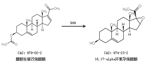 1.通过醋酸妊娠双烯醇酮合成16,17-alpha环氧孕烯醇酮,收率约94%;