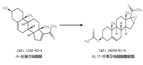 中文别名 16,17-alpha环氧孕烯醇酮醋酸酯;乙酸16,17-环氧孕烯醇酮酯;16,17-α环氧孕烯醇酮醋酸酯;