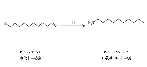 1.通过溴代十一碳烯合成1-氨基-10-十一烯,收率约44%;