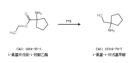 2.通过1-氨基环戊烷-1-羧酸乙酯合成1-氨基-1-环戊基甲醇,收率约77%;