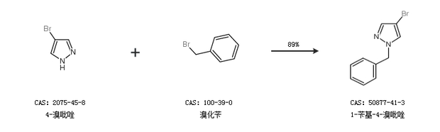 1.通过4-溴吡唑和溴化苄合成1-苄基-4-溴吡唑,收率约89%;