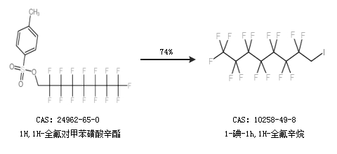 1.通过1H,1H-全氟对甲苯磺酸辛酯合成1-碘-1h,1H-全氟辛烷,收率约74%;