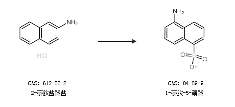 1.通过2-萘胺盐酸盐合成1-萘胺-5-磺酸