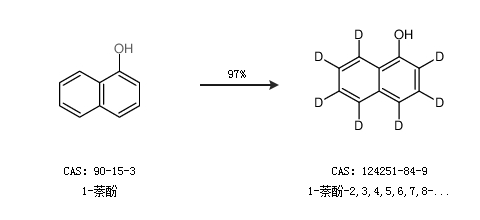 1.通过1-萘酚合成1-萘酚-2,3,4,5,6,7,8-d7,收率约97%;