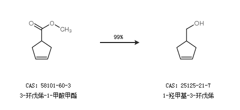 1.通过3-环戊烯-1-甲酸甲酯合成1-羟甲基-3-环戊烯,收率约99%;