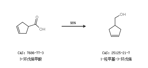 2.通过3-环戊烯甲酸合成1-羟甲基-3-环戊烯,收率约98%;