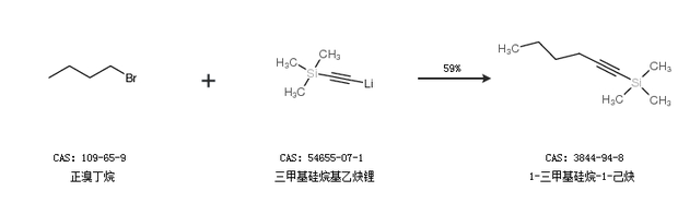 2.通过正溴丁烷和三甲基硅烷基乙炔锂合成1-三甲基硅烷-1-己炔,收率约59%;