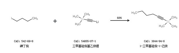 1.通过碘丁烷和三甲基硅烷基乙炔锂合成1-三甲基硅烷-1-己炔,收率约68%;