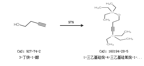 2.通过3-丁炔-1-醇合成1-三乙基硅烷-4-三乙基硅氧烷-1-丁炔,收率约97%;