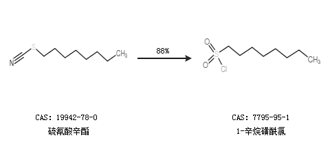2.通过硫氰酸辛酯合成1-辛烷磺酰氯,收率约88%;