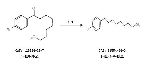 1.通过4-溴壬酰苯合成1-溴-4-壬基苯,收率约40%;