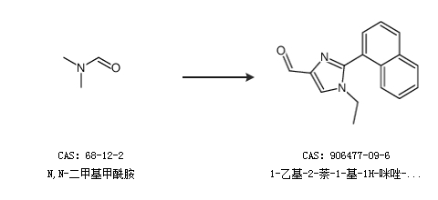 1.通过N,N-二甲基甲酰胺合成1-乙基-2-萘-1-基-1H-咪唑-4-甲醛