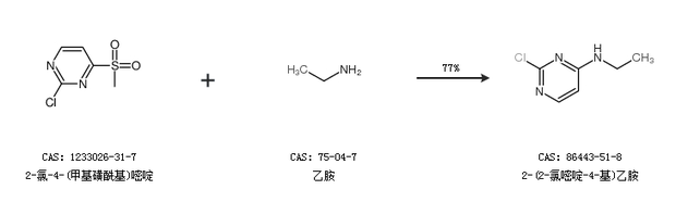 2.通过2-氯-4-(甲基磺酰基)嘧啶和乙胺合成2-(2-氯嘧啶-4-基)乙胺,收率约77%;