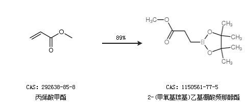 2.通过丙烯酸甲酯合成2-(甲氧基羰基)乙基硼酸频那醇酯,收率约89%;