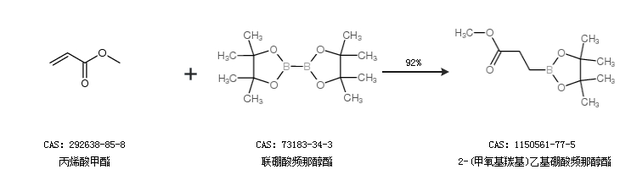 1.通过丙烯酸甲酯和联硼酸频那醇酯合成2-(甲氧基羰基)乙基硼酸频那醇酯,收率约92%;
