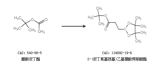 1.通过丙烯酸叔丁酯和联硼酸频那醇酯合成2-(叔丁氧基羰基)乙基硼酸频那醇酯,收率约92%;