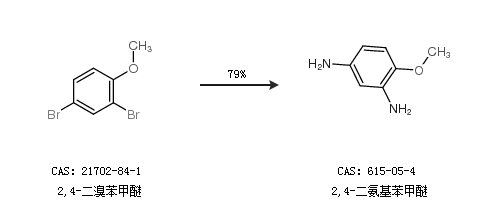 2.通过2,4-二溴苯甲醚合成2,4-二氨基苯甲醚,收率约79%;