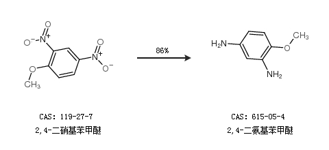1.通过2,4-二硝基苯甲醚合成2,4-二氨基苯甲醚,收率约86%;