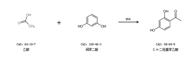 1.通过乙酸和间苯二酚合成2,4-二羟基苯乙酮,收率约95%;