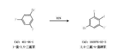 1.通过1-溴-3,5-二氟苯合成2,6-二氟-4-溴碘苯,收率约82%;
