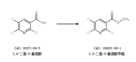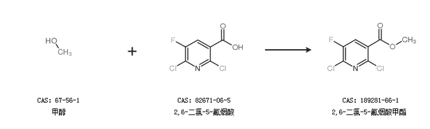 1.通过甲醇和2,6-二氯-5-氟烟酸合成2,6-二氯-5-氟烟酸甲酯