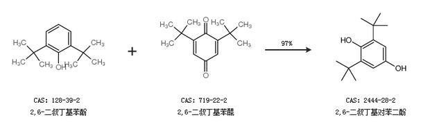 1.通过2,6-二叔丁基苯酚和2,6-二叔丁基苯醌合成2,6-二叔丁基对苯二酚,收率约97%;