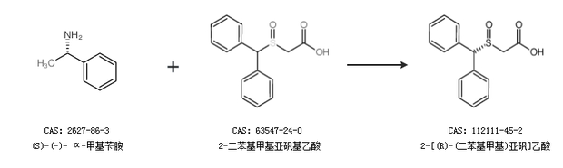 2.通过(S)-(-)- α-甲基苄胺和2-二苯基甲基亚砜基乙酸合成2-[(R)-(二苯基甲基)亚砜]乙酸