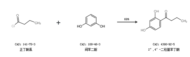 2.通过正丁酰氯和间苯二酚合成2’,4’-二羟基苯丁酮,收率约69%;