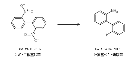 1.通过2,2''-二硝基联苯合成2-氨基-2’-碘联苯
