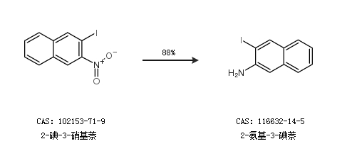 1.通过2-碘-3-硝基萘合成2-氨基-3-碘萘,收率约88%;