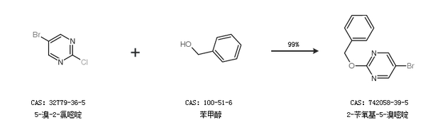 1.通过5-溴-2-氯嘧啶和苯甲醇合成2-苄氧基-5-溴嘧啶,收率约99%;