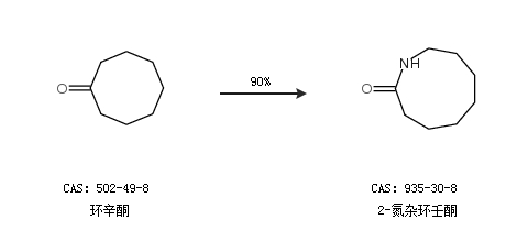 1.通过环辛酮合成2-氮杂环壬酮,收率约90%;