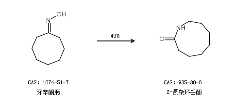2.通过环辛酮肟合成2-氮杂环壬酮,收率约49%;