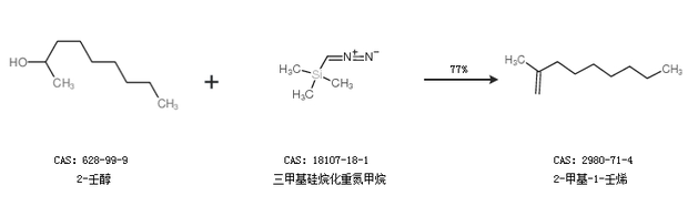 1.通过2-壬醇和三甲基硅烷化重氮甲烷合成2-甲基-1-壬烯,收率约77%;