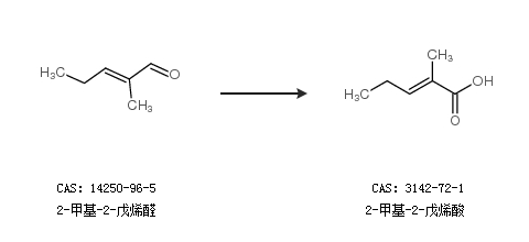 2.通过2-甲基-2-戊烯醛合成2-甲基-2-戊烯酸