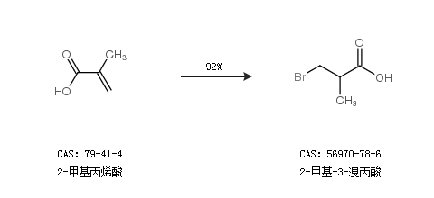1.通过2-甲基丙烯酸合成2-甲基-3-溴丙酸,收率约92%;