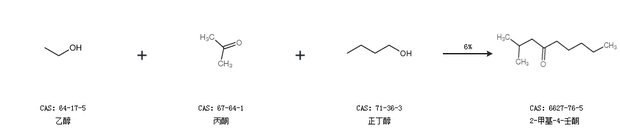 1.通过乙醇、丙酮和正丁醇合成2-甲基-4-壬酮,收率约7%;