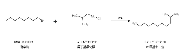 2.通过溴辛烷和异丁基氯化镁合成2-甲基十一烷,收率约92%;