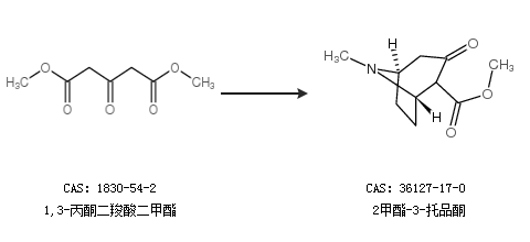 1.通过托品酮和氰基甲酸甲酯合成2甲酯-3-托品酮