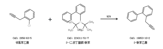 2.通过邻氯苯乙腈和2-(二叔丁基膦)联苯合成2-联苯乙腈,收率约92%;