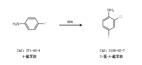 1.通过4-氟苯胺合成2-氯-4-氟苯胺,收率约86%;